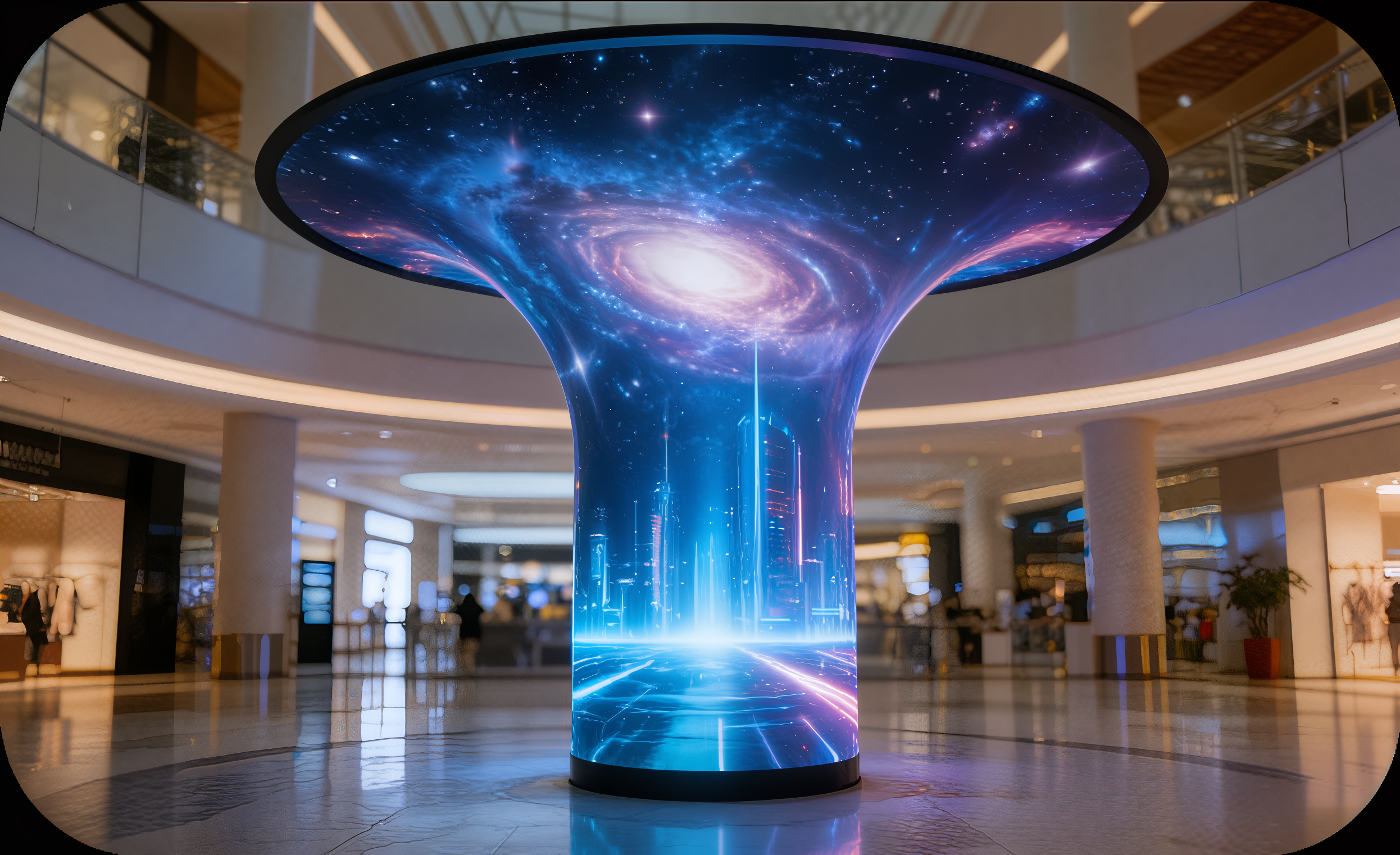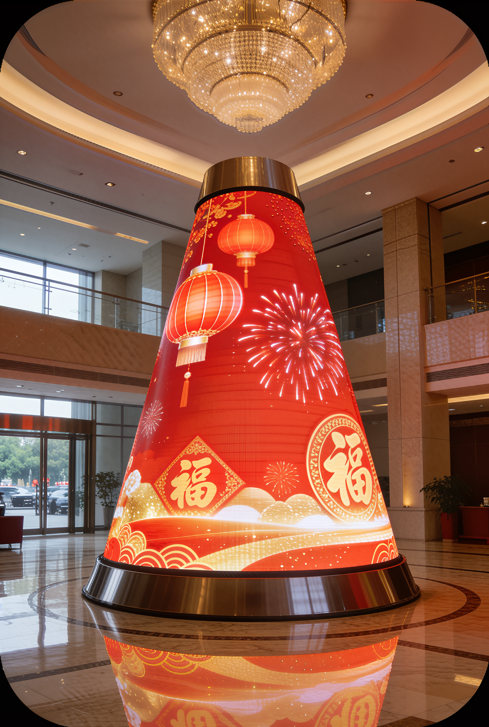 圓錐形狀的LED螢幕是一種利用 多個LED模組拼接而成 的異形螢幕,可以根據不同的需求和場景,