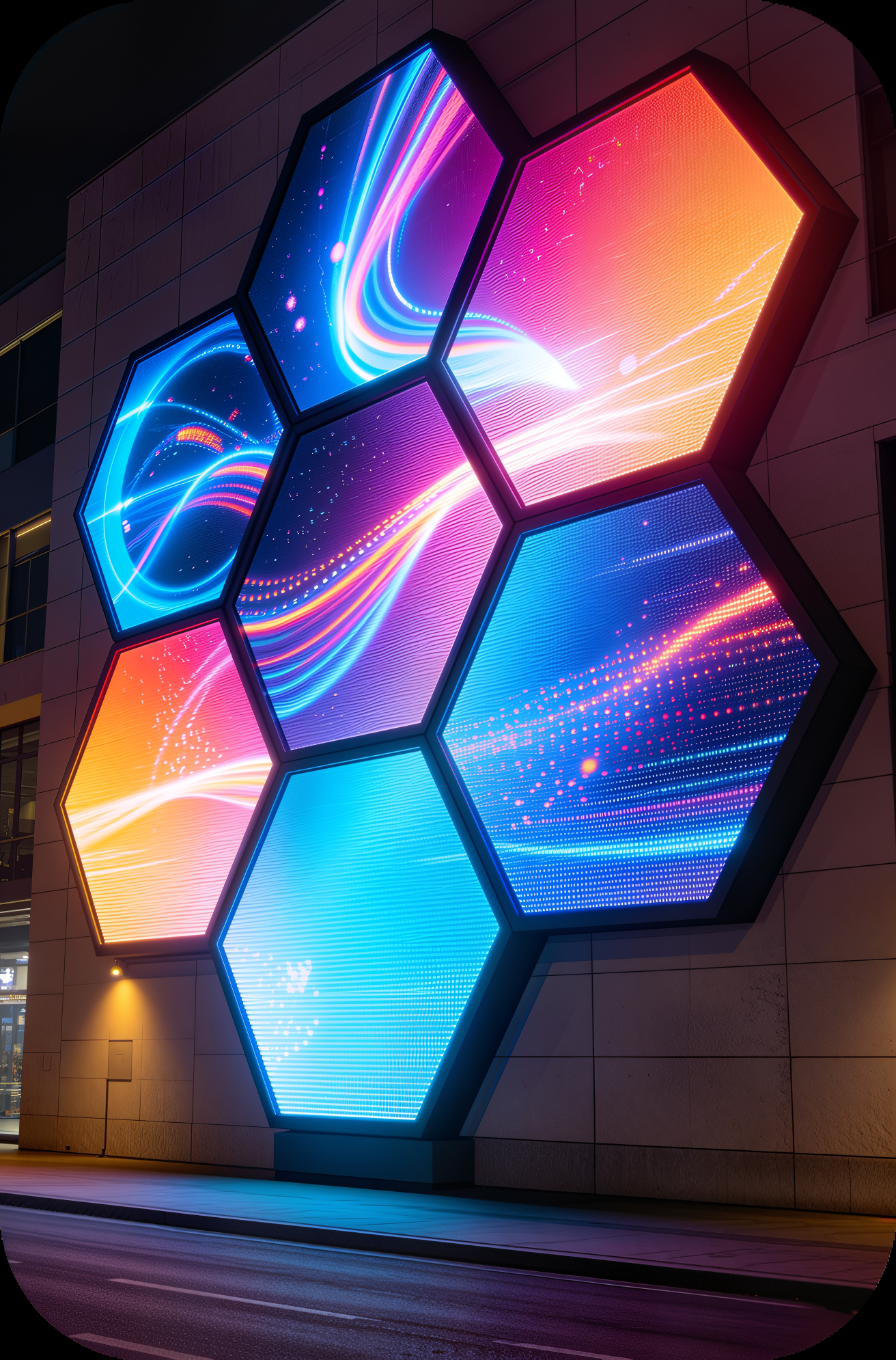 六邊形LED顯示幕採用 創新的六邊形設計 ,突破傳統矩形顯示幕的限制,