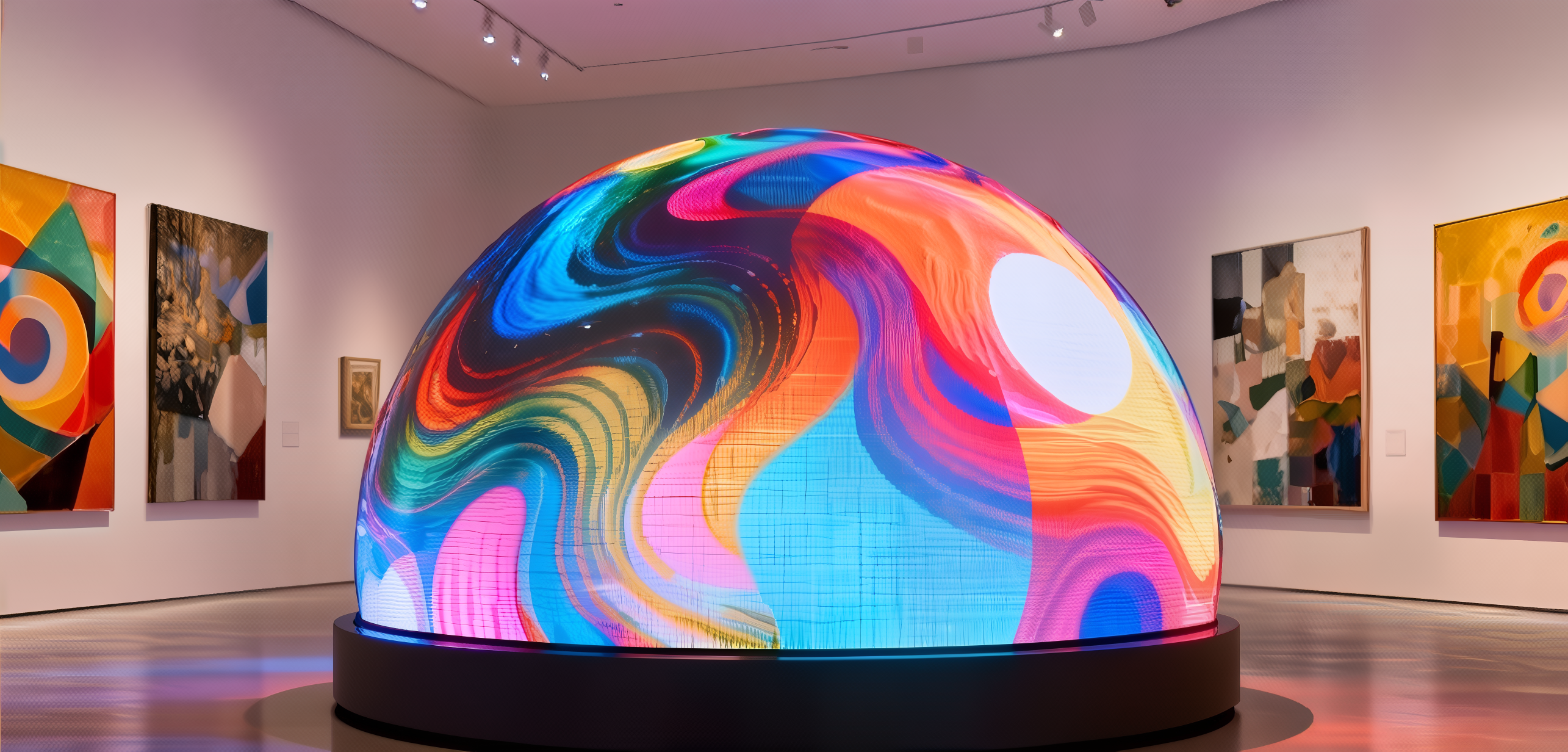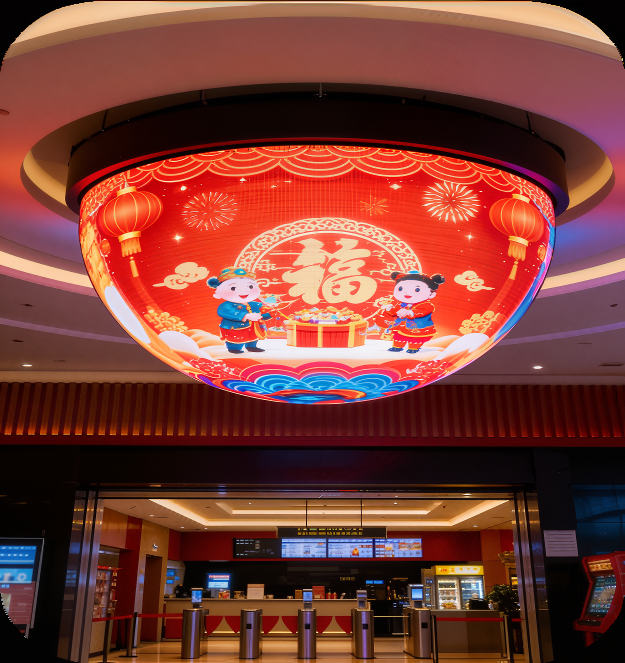 球冠形狀的LED異形屏專為 體育、娛樂、廣告 等場所定制,採用獨特的球冠設計,