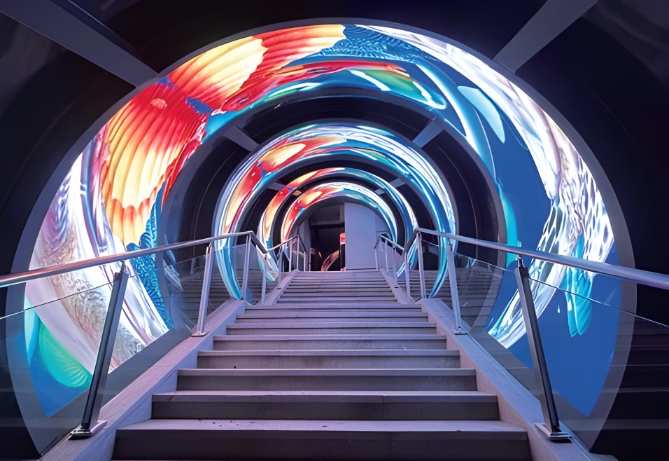 LED異形屏是一種 創意型的顯示裝置 ,可以根據不同的需求和場景,拼接成各種特殊的形狀,