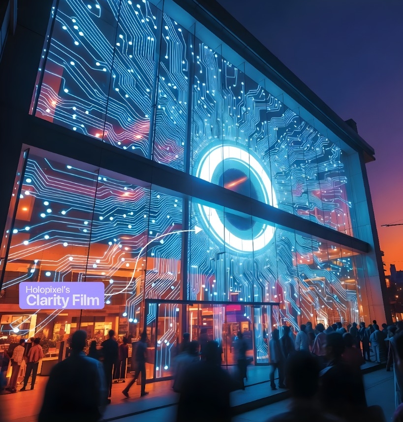 呈現動態影像與品牌內容,適用於商場櫥窗、玻璃帷幕與展覽展示空間。